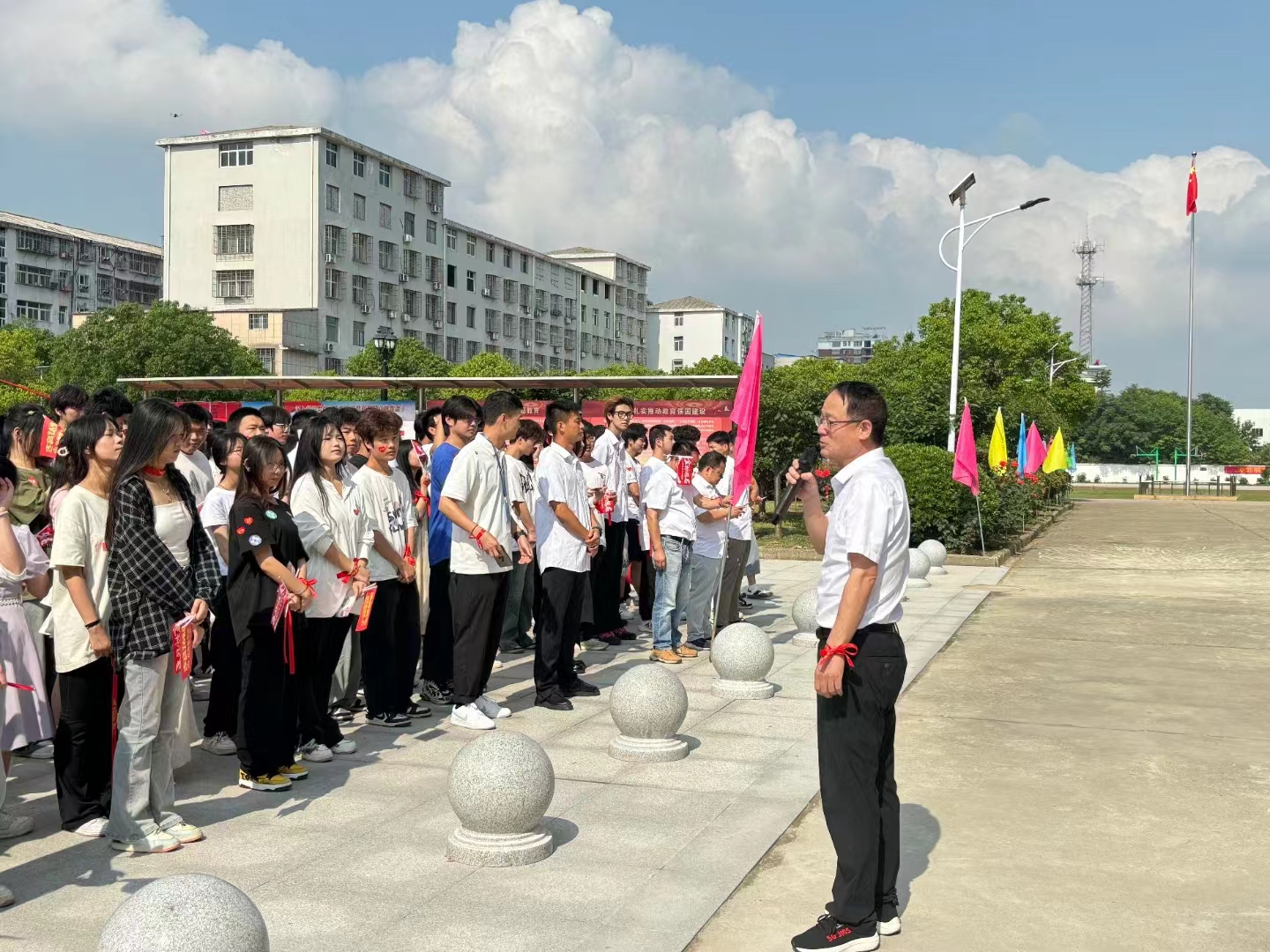 鼓乐声声、彩旗飘扬。6月6日上午,湖北航空高级技工学校、鄂州市经贸学校综合楼前广场铺上红地毯、架上状元门,隆重举行2024年高考送考仪式,为高三学子出征壮行、加油鼓劲、鼓舞士气,让高三学子以自信昂扬的状态、轻松愉快的心情迎接人生关键节点上的这场大考。学校校长刘启安、常务副校长余世涛、副校长李朝明和全校师生参加了此次送考活动,常务副校长余世涛同志主持本次活动。